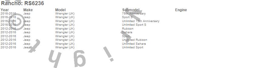 Below is an abbreviated list of applications for the rockGEAR Oil Pan Cover.WRANGLER, JEEP, 2012