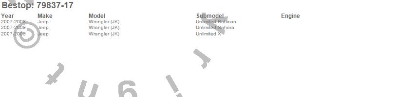 Below is an abbreviated list of applications for the Replace-A-Top.Wrangler (JK), Jeep, 2009, 2008, 2007