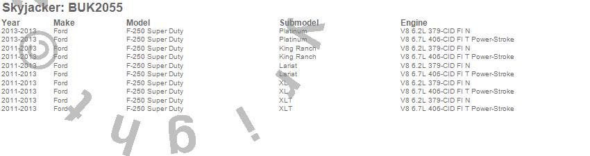 Below is an abbreviated list of applications for the Block And U-Bolt Kit.F-250 Super Duty Pickup, Ford, 2013, 2012, 2011