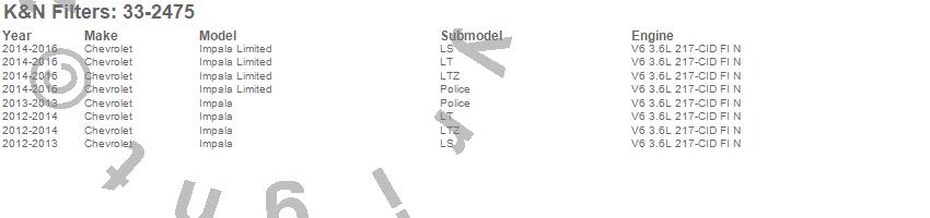 Below is an abbreviated list of applications for the Air Filter.Impala, Impala Limited, Chevrolet, 2016, 2015, 2014, 2013, 2012