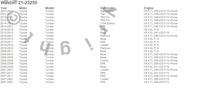 Below is an abbreviated list of applications for the PRO TRAXX 4 Oval Nerf Step Bars.Tundra, Toyota, 2021, 2020, 2019, 2018, 2017, 2016, 2015, 2014, 2013, 2012, 2011, 2010, 2009, 2008, 2007