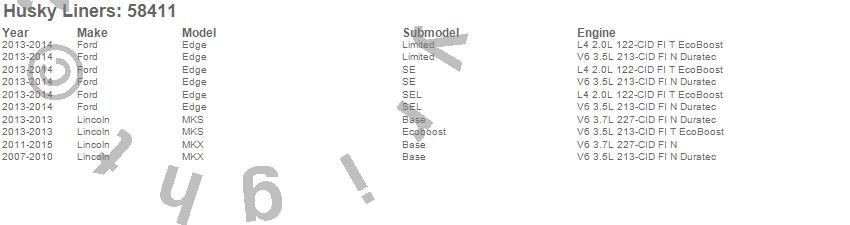 Below is an abbreviated list of applications for the Custom Molded Mud Guards.Edge, MKS, MKX, Ford, Lincoln, 2015, 2014, 2013, 2012, 2011, 2010, 2009, 2008, 2007