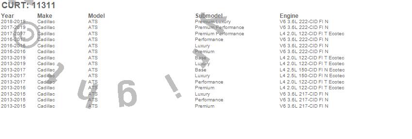 Below is an abbreviated list of applications for the Class I 1.25 in. Receiver Hitch.ATS, Cadillac, 2019, 2018, 2017, 2016, 2015, 2014, 2013