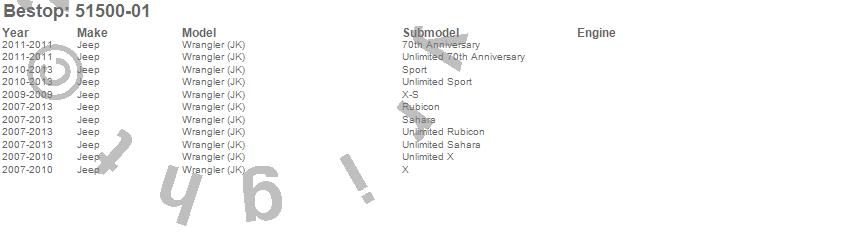 Below is an abbreviated list of applications for the Floor Mats.Wrangler (JK), Jeep, 2013, 2012, 2011, 2010, 2009, 2008, 2007