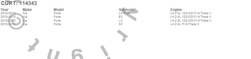 Below is an abbreviated list of applications for the Class I 1.25 in. Receiver Hitch.Forte, Kia, 2013, 2012, 2011, 2010