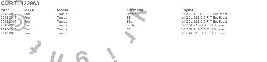 Below is an abbreviated list of applications for the Class II 1.25 in. Receiver Hitch.Taurus, Ford, 2019, 2018, 2017, 2016, 2015, 2014, 2013, 2012, 2011, 2010