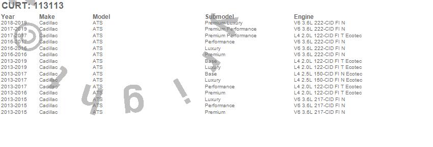 Below is an abbreviated list of applications for the Class I 1.25 in. Receiver Hitch.ATS, Cadillac, 2019, 2018, 2017, 2016, 2015, 2014, 2013