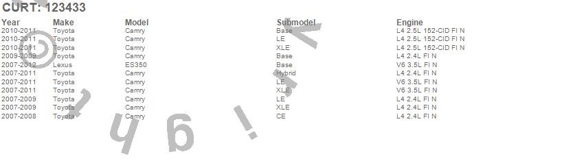Below is an abbreviated list of applications for the Class II 1.25 in. Receiver Hitch.Camry, ES350, Lexus, Toyota, 2012, 2011, 2010, 2009, 2008, 2007