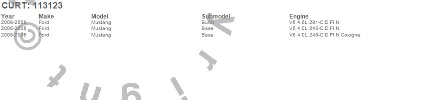 Below is an abbreviated list of applications for the Class I 1.25 in. Receiver Hitch.Mustang, Ford, 2008, 2007, 2006, 2005