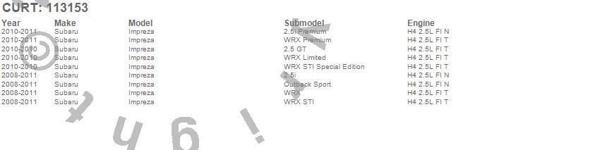 Below is an abbreviated list of applications for the Class I 1.25 in. Receiver Hitch.Impreza, Subaru, 2011, 2010, 2009, 2008
