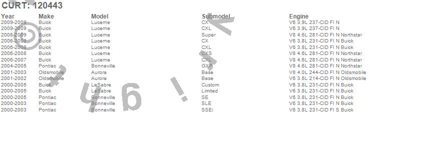 Below is an abbreviated list of applications for the Class II 1.25 in. Receiver Hitch.Aurora, Bonneville, LeSabre, Lucerne, Buick, Oldsmobile, Pontiac, 2009, 2008, 2007, 2006, 2005, 2004, 2003, 2002, 2001, 2000