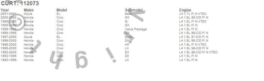 Below is an abbreviated list of applications for the Class I 1.25 in. Receiver Hitch.Civic, EL, Acura, Honda, 2001, 2000, 1999, 1998, 1997, 1996, 1995, 1994, 1993, 1992