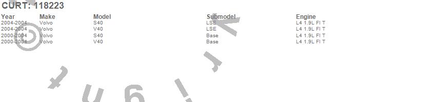 Below is an abbreviated list of applications for the Class I 1.25 in. Receiver Hitch.S40, V40, Volvo, 2004, 2003, 2002, 2001, 2000