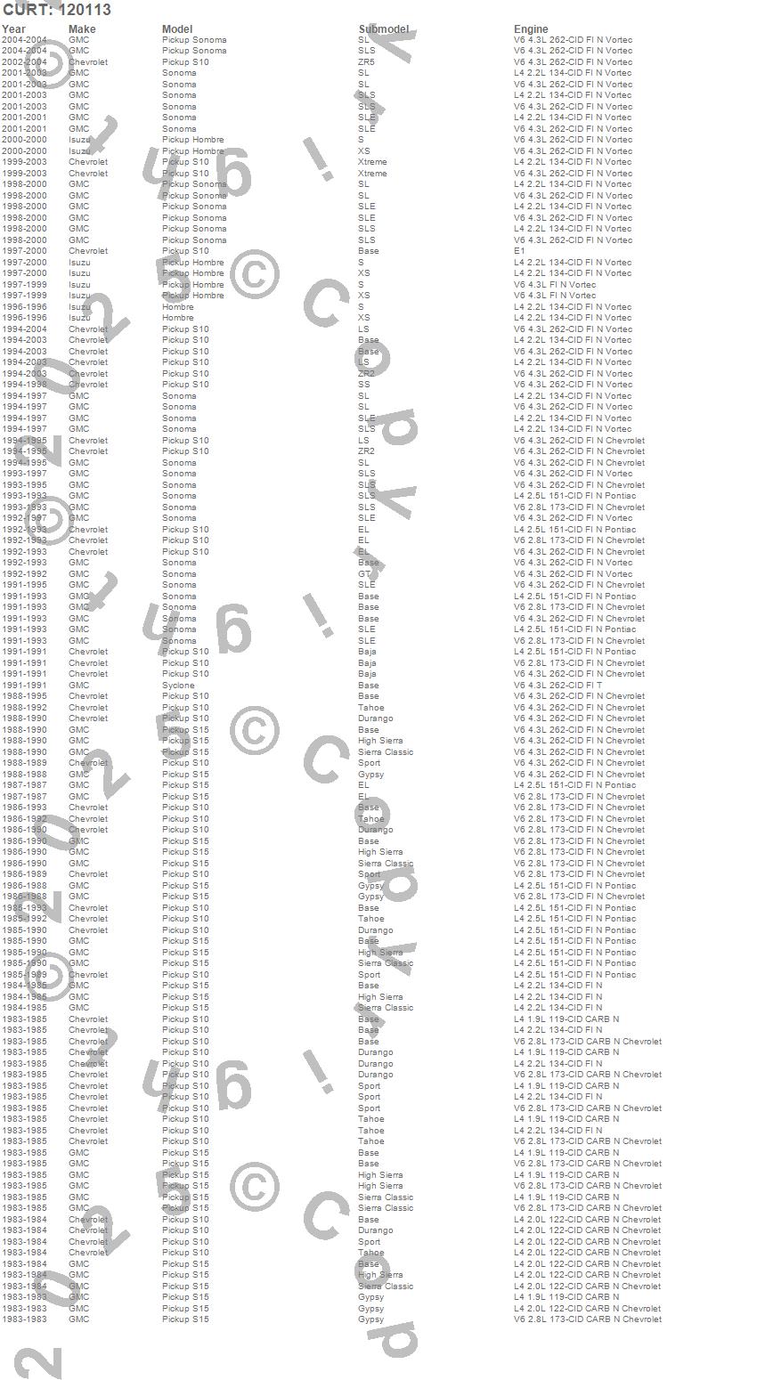 Below is an abbreviated list of applications for the Class II 1.25 in. Receiver Hitch.Hombre, S10 Pickup, S15 Pickup, Sonoma, Syclone, Chevrolet, GMC, Isuzu, 2004, 2003, 2002, 2001, 2000, 1999, 1998, 1997, 1996, 1995, 1994, 1993
