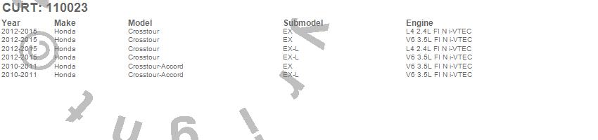 Below is an abbreviated list of applications for the Class I 1.25 in. Receiver Hitch.Accord Crosstour, Crosstour, Honda, 2015, 2014, 2013, 2012, 2011, 2010