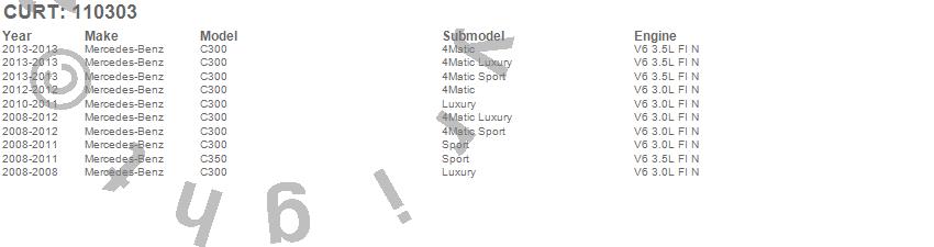 Below is an abbreviated list of applications for the Class I 1.25 in. Receiver Hitch.C300, C350, Mercedes-Benz, 2013, 2012, 2011, 2010, 2009, 2008