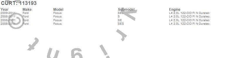 Below is an abbreviated list of applications for the Class I 1.25 in. Receiver Hitch.Focus, Ford, 2011, 2010, 2009, 2008