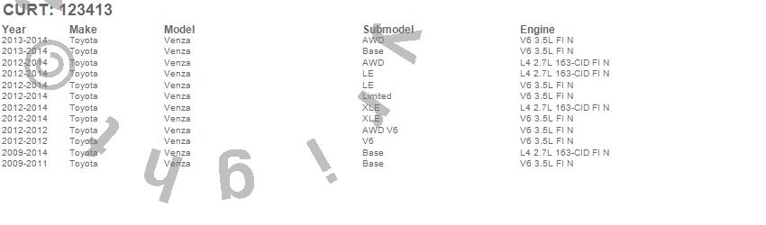 Below is an abbreviated list of applications for the Class II 1.25 in. Receiver Hitch.Venza, Toyota, 2014, 2013, 2012, 2011, 2010, 2009