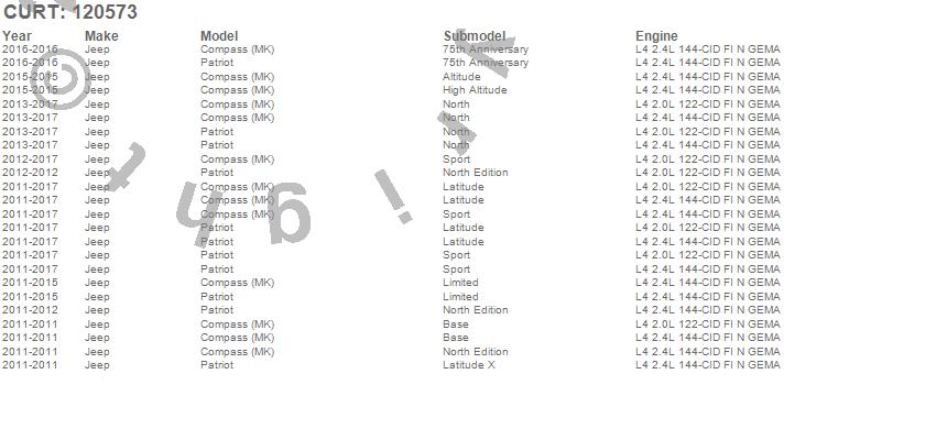 Below is an abbreviated list of applications for the Class II 1.25 in. Receiver Hitch.Compass, Patriot, Jeep, 2017, 2016, 2015, 2014, 2013, 2012, 2011