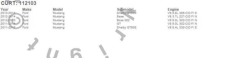 Below is an abbreviated list of applications for the Class I 1.25 in. Receiver Hitch.Mustang, Ford, 2014, 2013, 2012, 2011