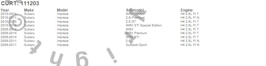Below is an abbreviated list of applications for the Class I 1.25 in. Receiver Hitch.Impreza, Subaru, 2014, 2013, 2012, 2011, 2010, 2009