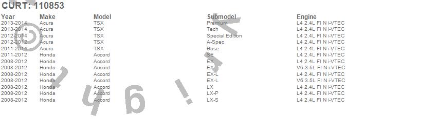 Below is an abbreviated list of applications for the Class I 1.25 in. Receiver Hitch.Accord, TSX, Acura, Honda, 2014, 2013, 2012, 2011, 2010, 2009, 2008
