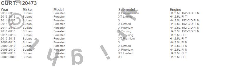 Below is an abbreviated list of applications for the Class II 1.25 in. Receiver Hitch.Forester, Subaru, 2013, 2012, 2011, 2010, 2009