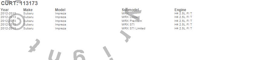 Below is an abbreviated list of applications for the Class I 1.25 in. Receiver Hitch.Impreza, Subaru, 2013, 2012