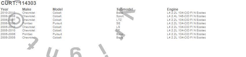 Below is an abbreviated list of applications for the Class I 1.25 in. Receiver Hitch.Cobalt, Pursuit, Chevrolet, Pontiac, 2010, 2009, 2008, 2007, 2006, 2005