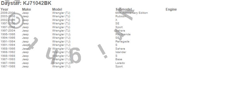 Below is an abbreviated list of applications for the Hood Vent.Wrangler (TJ), Wrangler (YJ), Jeep, 2006, 2005, 2004, 2003, 2002, 2001, 2000, 1999, 1998, 1997, 1995, 1994, 1993, 1992, 1991, 1990, 1989