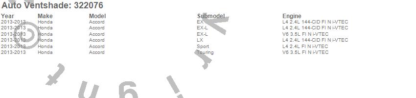 Below is an abbreviated list of applications for the Aeroskin Smoke Hood Protector.Accord, Honda, 2013