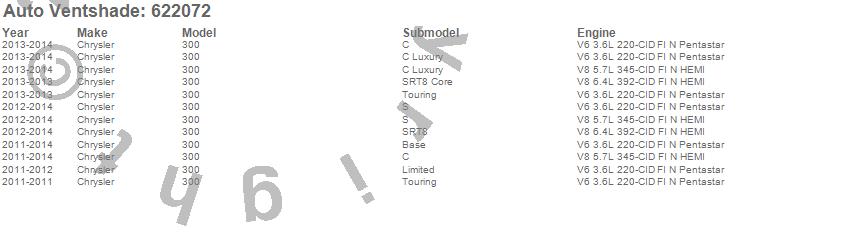 Below is an abbreviated list of applications for the Aeroskin Chrome Hood Protector.300, Chrysler, 2014, 2013, 2012, 2011