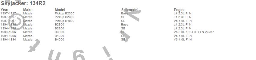 Below is an abbreviated list of applications for the Block And U-Bolt Kit.B2300, B3000, B4000, Mazda, 1997, 1996, 1995, 1994