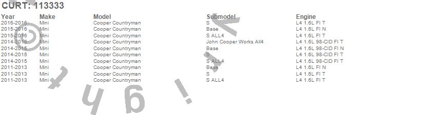 Below is an abbreviated list of applications for the Class I 1.25 in. Receiver Hitch.Cooper Countryman, Mini, 2016, 2015, 2014, 2013, 2012, 2011