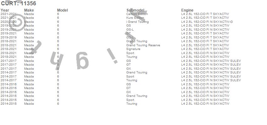 Below is an abbreviated list of applications for the Class I 1.25 in. Receiver Hitch.6, Mazda, 2021, 2020, 2019, 2018, 2017, 2016, 2015, 2014