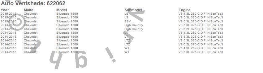 Below is an abbreviated list of applications for the Aeroskin Chrome Hood Protector.Silverado 1500, Chevrolet, 2015, 2014