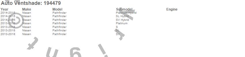Below is an abbreviated list of applications for the Ventvisor In-Channel Deflector 4 pc..Pathfinder, Nissan, 2018, 2017, 2016, 2015, 2014, 2013