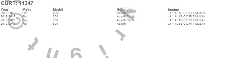 Brand: CURTPart Number: 11347Trailer Hitch Type: Rear - 2000lbs. Gross Trailer Weight - 200lbs. Tongue WeightUPC: 612314113477