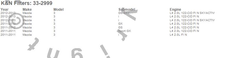 Below is an abbreviated list of applications for the Air Filter.3, Mazda, 2013, 2012, 2011