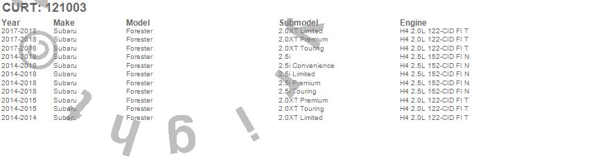 Below is an abbreviated list of applications for the Class II 1.25 in. Receiver Hitch.Forester, Subaru, 2018, 2017, 2016, 2015, 2014