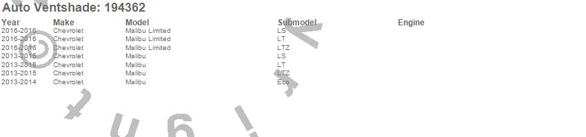 Below is an abbreviated list of applications for the Ventvisor In-Channel Deflector 4 pc..Malibu, Malibu Limited, Chevrolet, 2016, 2015, 2014, 2013