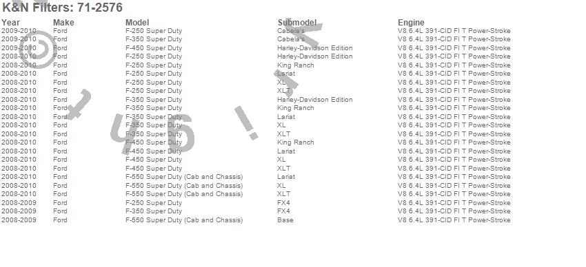 Below is an abbreviated list of applications for the Blackhawk Air Induction Kit.F-250 Super Duty, F-350 Super Duty, F-450 Super Duty, F-550 Super Duty, Ford, 2010, 2009, 2008