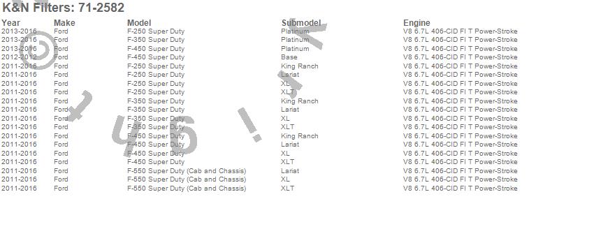 Below is an abbreviated list of applications for the Blackhawk Air Induction Kit.F-250 Super Duty, F-350 Super Duty, F-450 Super Duty, F-550 Super Duty, Ford, 2016, 2015, 2014, 2013, 2012, 2011