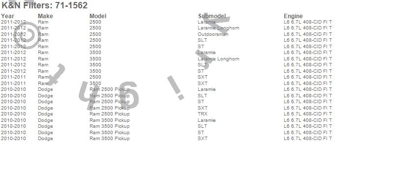 Below is an abbreviated list of applications for the Blackhawk Air Induction Kit.2500, 3500, Ram 2500, Ram 3500, Dodge, Ram, 2012, 2011, 2010