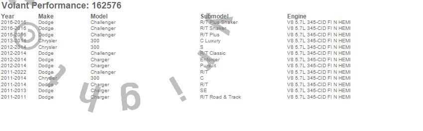 Below is an abbreviated list of applications for the Cold Air Intake Kit.300, Challenger, Charger, Chrysler, Dodge, 2022, 2021, 2020, 2019, 2018, 2017, 2016, 2015, 2014, 2013, 2012, 2011