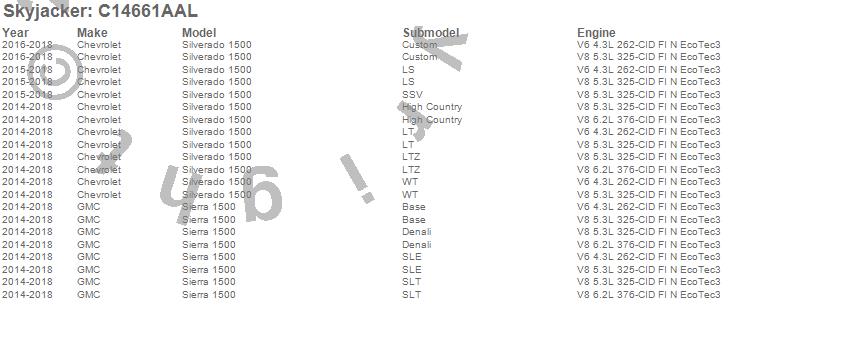 Brand: SkyjackerPart Number: C14661AALLift Kit-Suspension Component Type: 6 - 7 in. LiftUPC: 803696217192