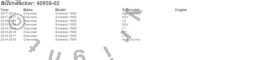 Below is an abbreviated list of applications for the Pocket Style Fender Flares.Silverado 1500, Chevrolet, 2018, 2017, 2016, 2015, 2014