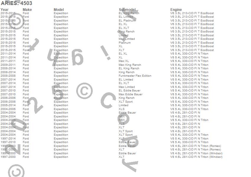 Below is an abbreviated list of applications for the The Standard 6 in. Oval Nerf Bar Mounting Brackets.Expedition, Navigator, Ford, Lincoln, 2017, 2016, 2015, 2014, 2013, 2012, 2011, 2010, 2009, 2008, 2007, 2006, 2005, 2004, 2003, 2002