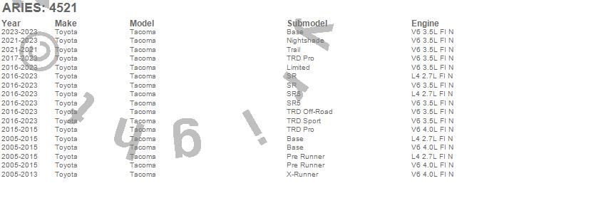 Brand: ARIESPart Number: 4521Nerf/Step Bar Mount Kit Type: Side Bars Sold SeparatelyUPC: 849055018765