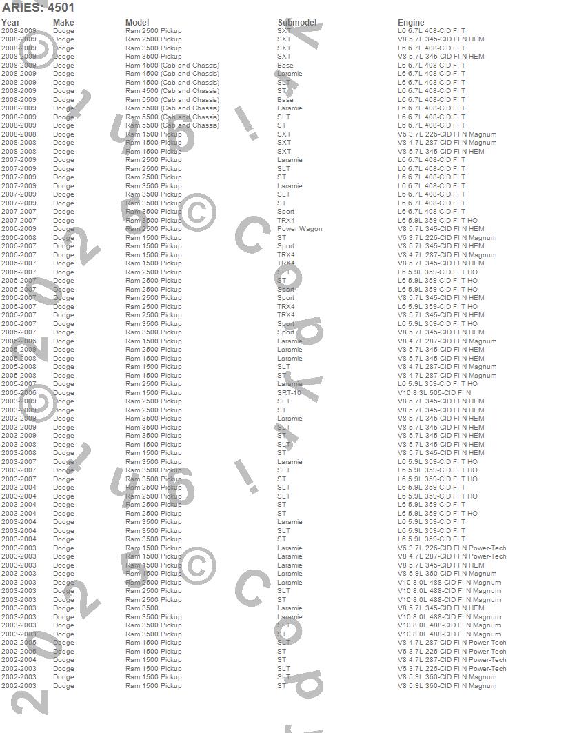Below is an abbreviated list of applications for the The Standard 6 in. Oval Nerf Bar Mounting Brackets.Ram 1500, Ram 2500, Ram 3500, Ram 4500, Ram 5500, Dodge, 2009, 2008, 2007, 2006, 2005, 2004, 2003, 2002